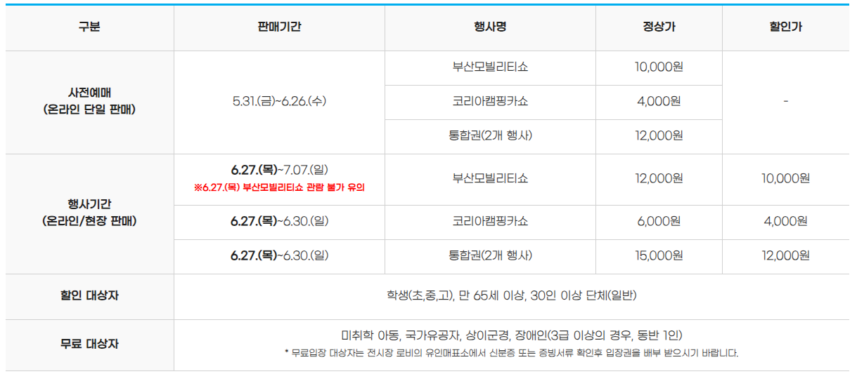 * 코리아캠핑카쇼 행사종료일 6월 30일(일)임에 관람 유의 하세요.