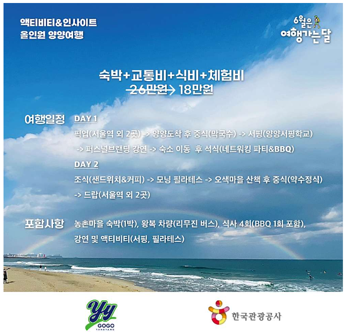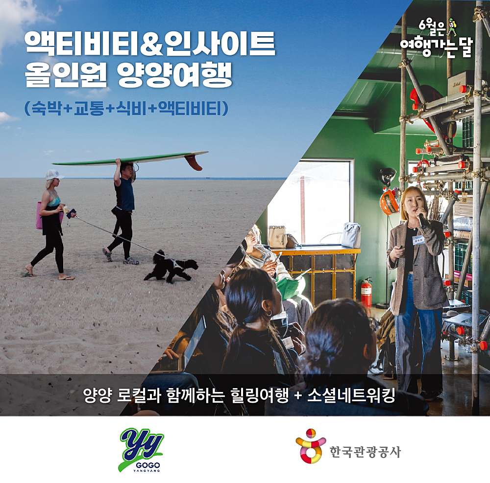 한국관광공사 강원지사와 함께하는 여행가는 달 !! 양양 프라이빗 해변에서 서핑과 필라테스도 배우고, 나의 가치찾기(퍼스널 브랜딩)를 통해 인사이트까지 챙겨가는 특별한 양양여행 서울-양