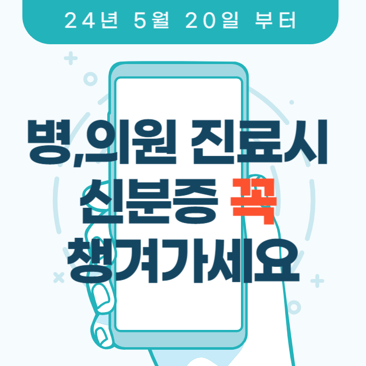 2024년 5월 20일 부터는 꼭 병원 진료시 신분증일 지참하셔야만 진료를 보실수 있습니다.