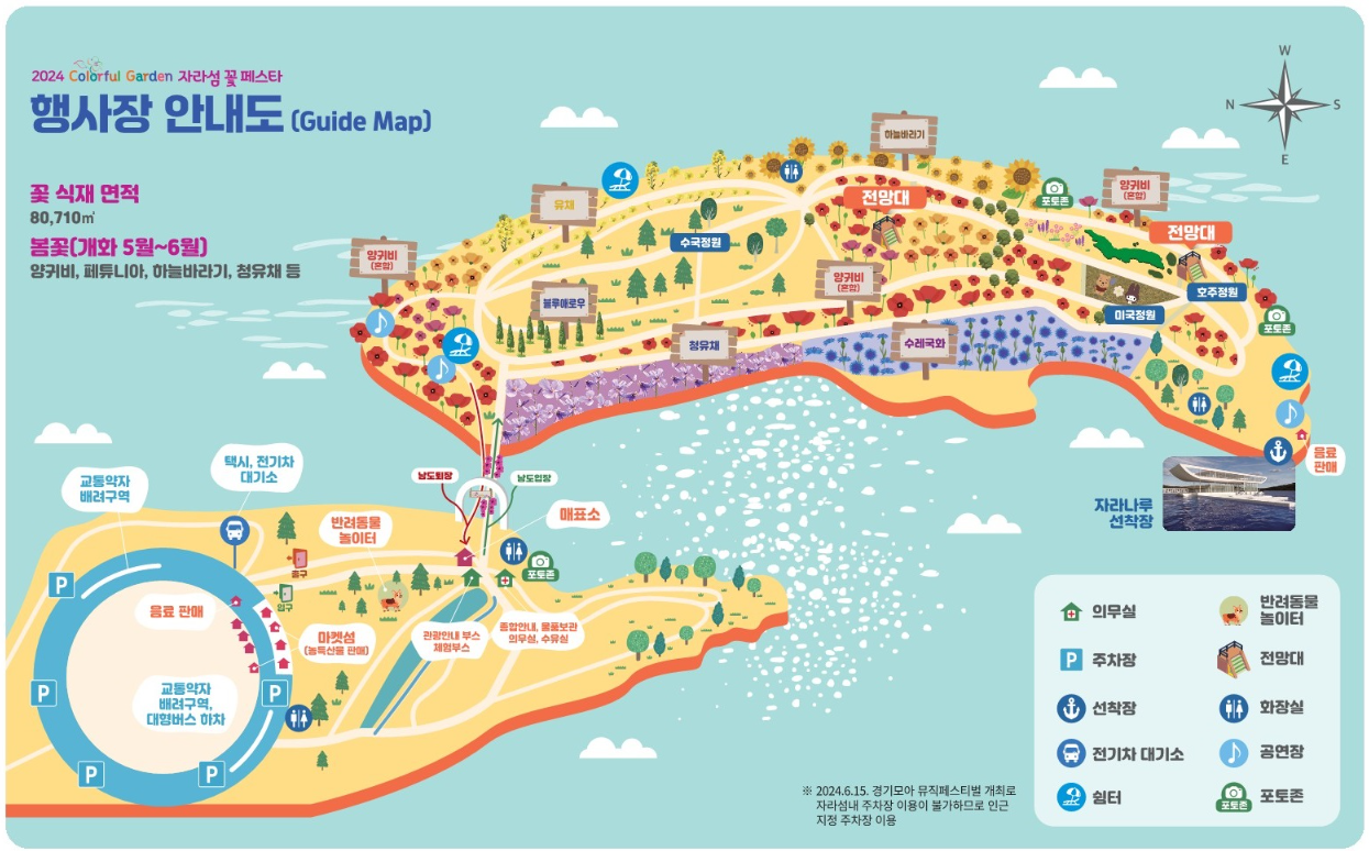 2024 경기모아뮤직페스티벌 (2024.6.15) 무대 설치 및 철거 등으로 자라섬 중도 주차장 (원형잔디밭)은 사용 불가합니다!!