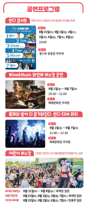 - 버블아트공연: 🗓️8/31(토), 9/1(일), 9/2(월), 9/7(토) 🚩축제장 일원